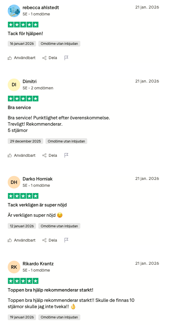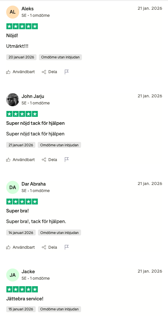 Du får betalt direkt! Betalning sker på plats. Ingen väntetid, inga fördröjningar. Vi erbjuder omedelbar utbetalning via Swish så fort värderingen är klar.